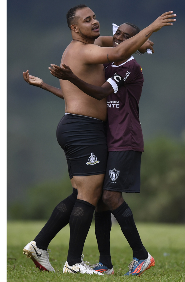 Não é só uma partida de futebol. Na noite anterior à final do torneio-raiz, Cel- minho, o jogador faz-tudo do Minas, não conseguia dormir. Era uma ansiedade só, muita coisa a aprontar no palco da deci- são e a angústia de uma espera de oito anos pelo título regional. “É como se o ti- me fosse minha segunda família”, ressal- tou ele, antes de engasgar com a própria fala e se derramar em lágrimas. Aos 43, o veterano, que ainda dá sua parcela em campo, tem na equipe o que mais o enche de orgulho: o filho Kaique, centroavante do Minas. Parrudo, por assim dizer, o joga- dor de 23 anos tem mantido as honras com maestria. Coube a ele o papel de estufar as redes duas vezes na vitória por 4 a 2 que deu ao Minas, de Piracema, o título sobre o Tupanuara, da vizinha Carmópolis de Minas. “Falei que ia deixar pelo menos um”, disse o artilheiro da competição, com sete gols.